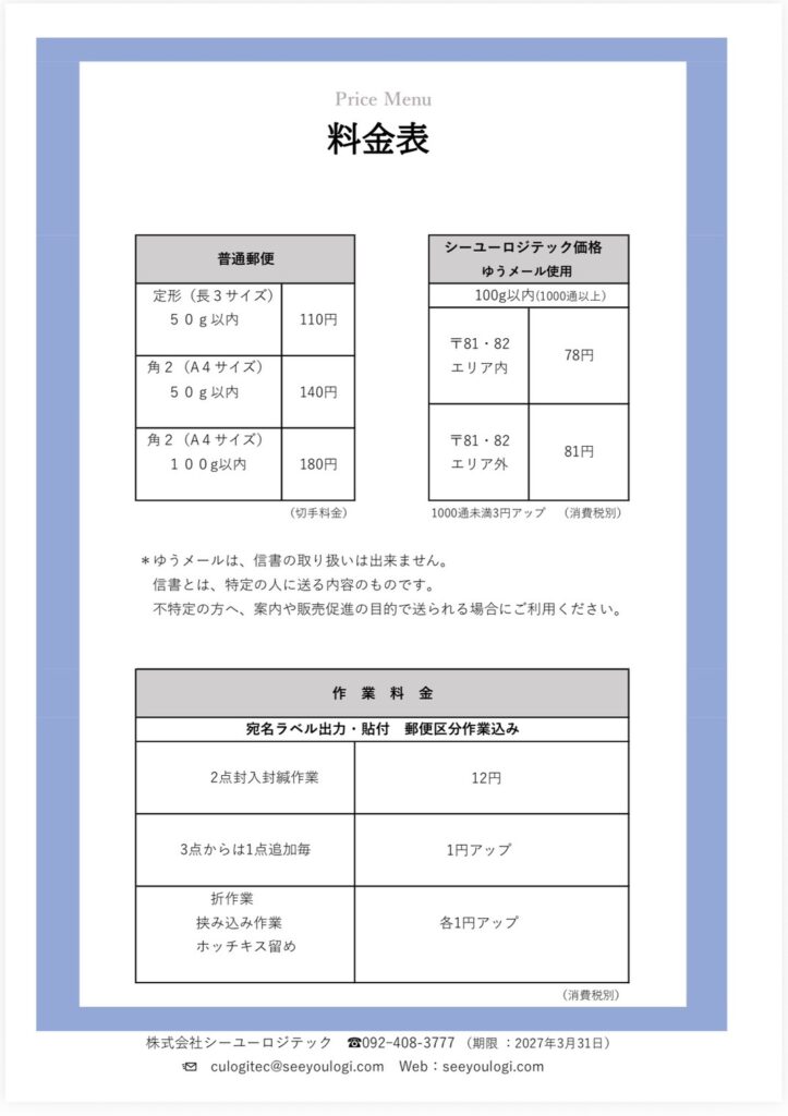 福岡ダイレクトメールDM発送代行株式会社シーユーロジテック2026年4月1日スタート